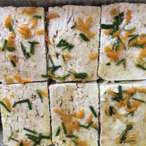 marinated feta slices (allow excess oil to drain off of the feta as using)